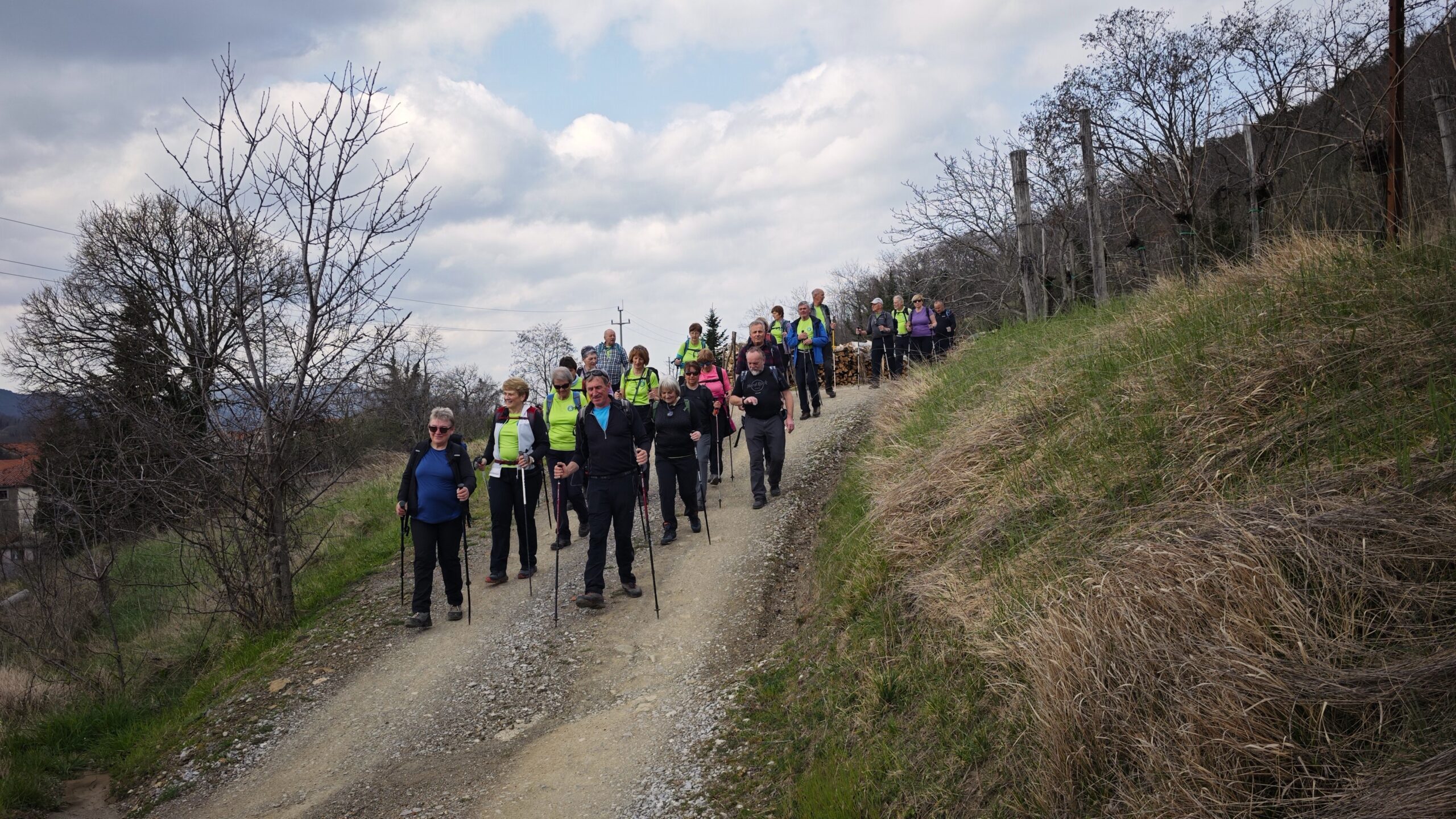 V vasi smo se pričeli vzpenjati proti najvišji točki današnjega pohoda. Školj je hrib, ki se dviga nad Vipavsko dolino. Z višine 418 m ponuja zelo lepe razglede na dolino, vinograde, polja in bližnje vasi. V preteklosti je bil Školj strateško pomemben, danes pa je hrib zaradi mirne narave priljubljen predvsem za sprehode in izlete. Po krajšem postanku na vrhu smo se spustili proti vasi Šmarje, ki leži na manjši vzpetini nad dolino. V Šmarjah se v okviru vinskih prireditev občasno odvijajo degustacije vinskih ponudnikov. Barjane je pritegnila Grofova vinska klet, ki je ena najstarejših in najbolj cenjenih vinskih kleti v Vipavski dolini, znana po kakovostnih vinih.