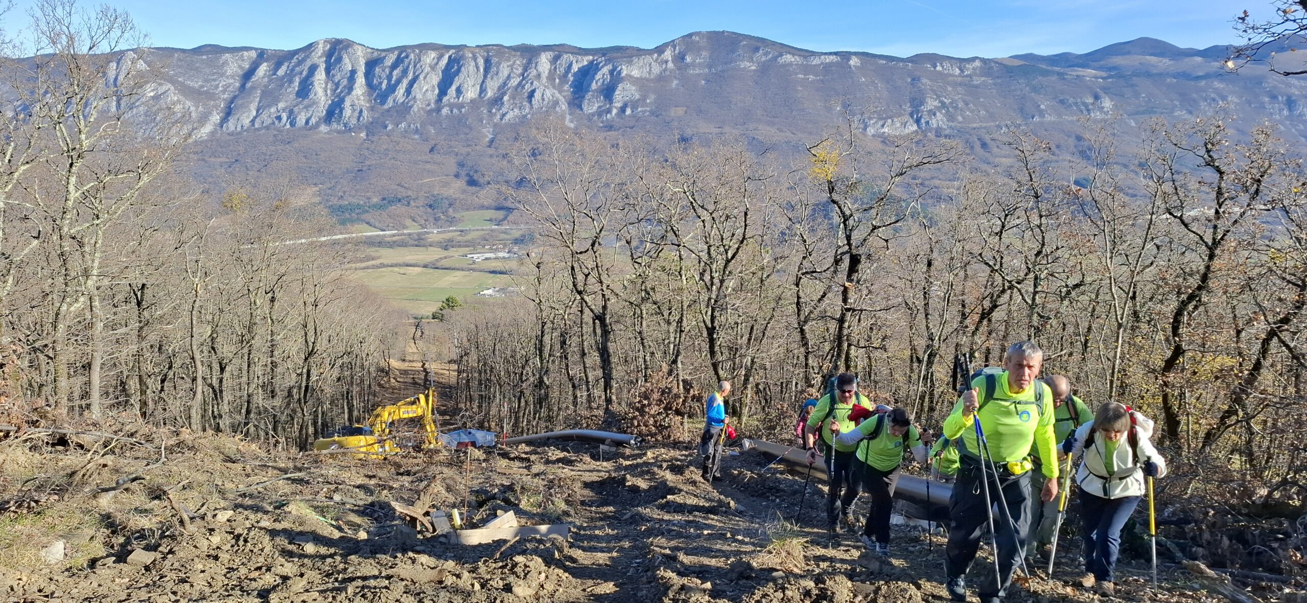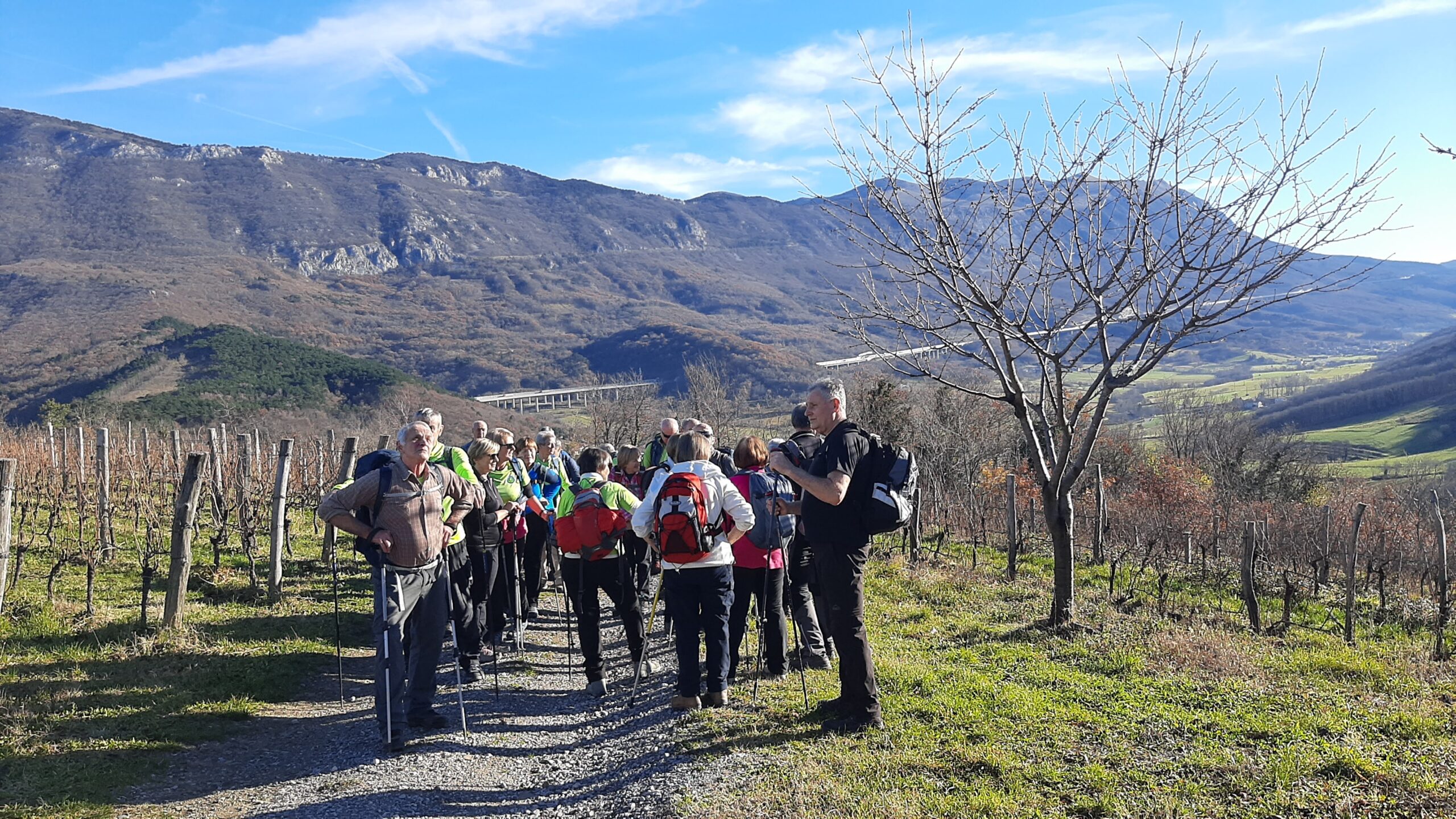 Vremenska napoved za decemberski pohod je bila odlična, sončno vreme z visokimi temperaturami. Za cilj smo si izbrali dva vrhova, Sveti Socerb in Kjecl oz. Orehovški Triglav. Izhodišče pohoda je bilo v slikoviti vasi Podnanos. Najprej je našo pozornost pritegnil vaški dvorec Zajčji grad, zgrajen konec 17. stoletja, ki se nahaja ob cesti proti Orehovici. Iz vasi smo se vzpeli na Sveti Socerb, ki je najvišji izmed bližnjih vzpetin, saj leži na nadmorski višini 555 m in zato ponuja čudovit razgled po zgornji Vipavski dolini od Razdrtega pa vse do Ajdovščine in okoliških vasi, raztresenih po Vipavskih brdih. Na vrhu vzpetine stoji obnovljena cerkev sv. Socerba. Po približno 30 minutah hoje smo dosegli tudi naš drugi cilj, 476 metrov visok vrh Kjecl. Lahko ga poimenujemo tudi Orehovški Triglav, saj je leta 1999 nekaj Orehovčanov na vrhu postavilo dvojnik Aljaževega stolpa s Triglava. Tik pod vrhom je postavljeno tudi manjše nabožno znamenje v obliki kapelice v deblu.