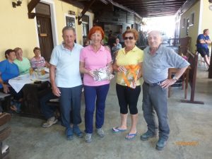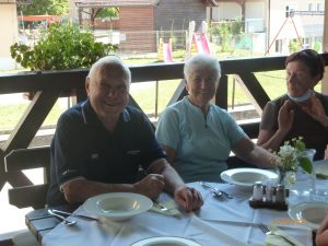 Zanimiv bi bil obisk gradu, a prišel je čas za povratek proti Vrhniki. Tu smo imeli še eno prijetno opravilo, saj sta nas naši slavljenki Marta in Pavla pogostili pri Kranjcu, mi pa smo jima izročili darilca in zapeli.