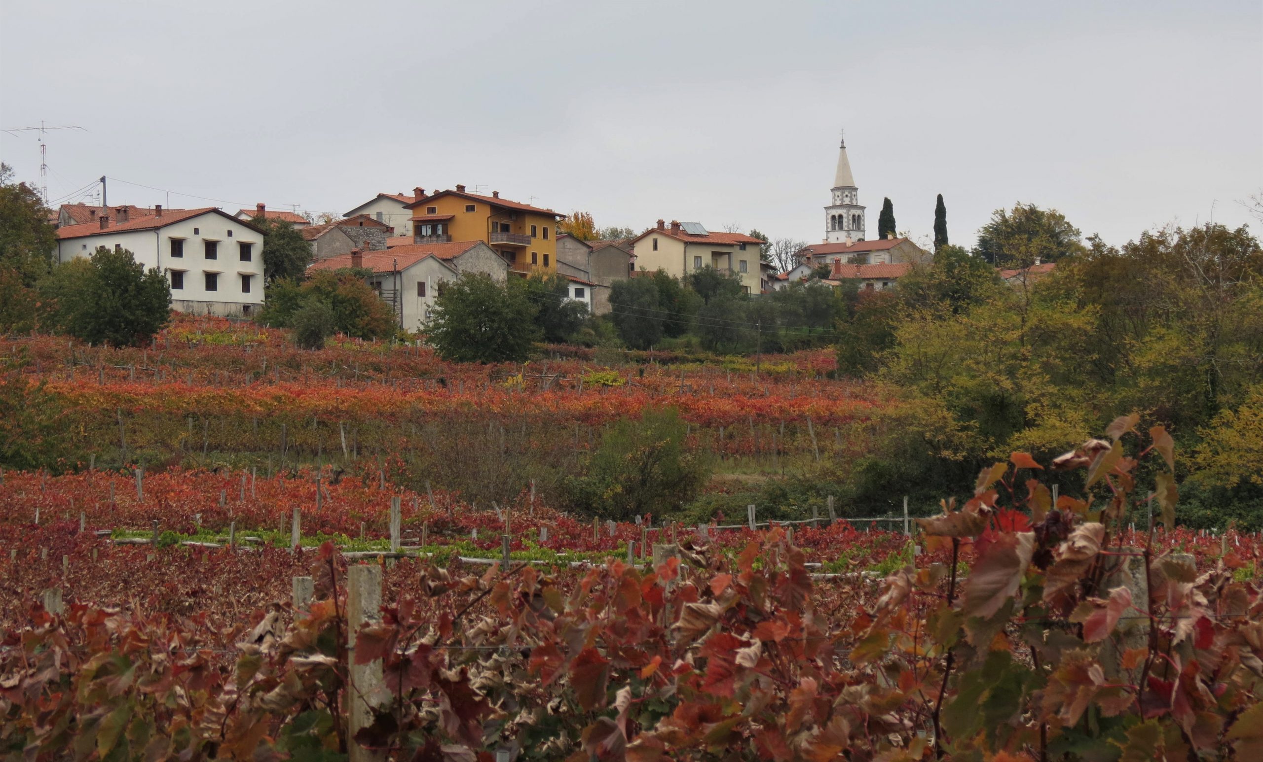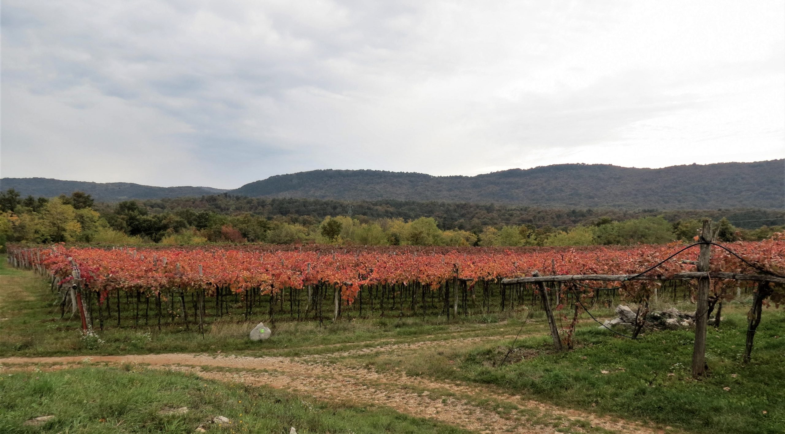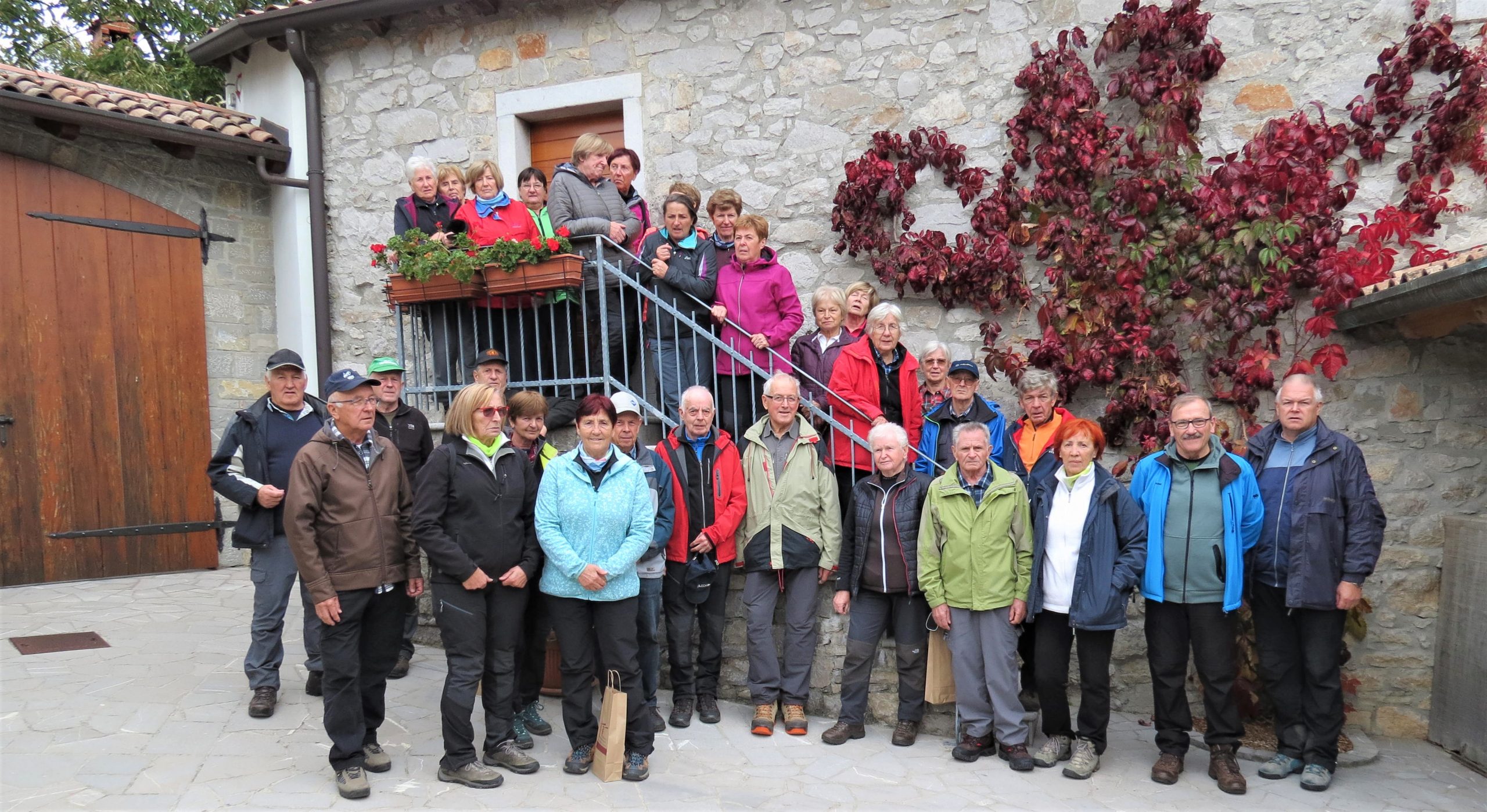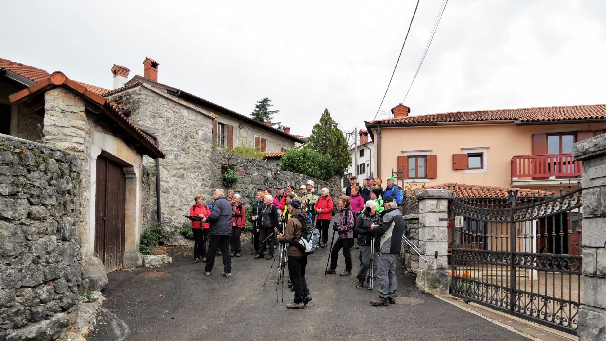 Kot vedno smo ob prihodu pričeli z jutranjo kavico. Tam nas je že pričakal vodnik Bogdan in odpravili smo se po Teranovi poti. Priporočam jo vsem, ki boste kdaj obiskali Kras. Ob poti med vinogradi in gmajnami, poraslimi z grmički jesensko žarečega ruja nam je ob postankih povedal še toliko drugih zanimivosti, ki so popestrile naš sicer malce oblačen, pa kljub temu od jesenskih barv žareč dan.