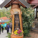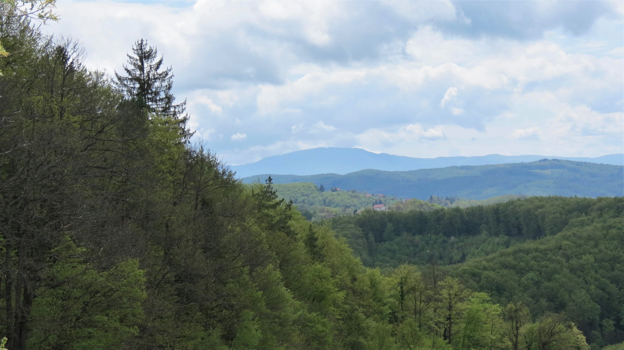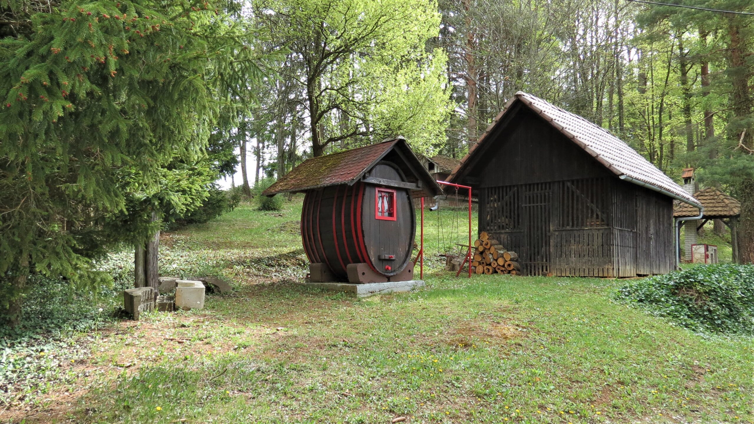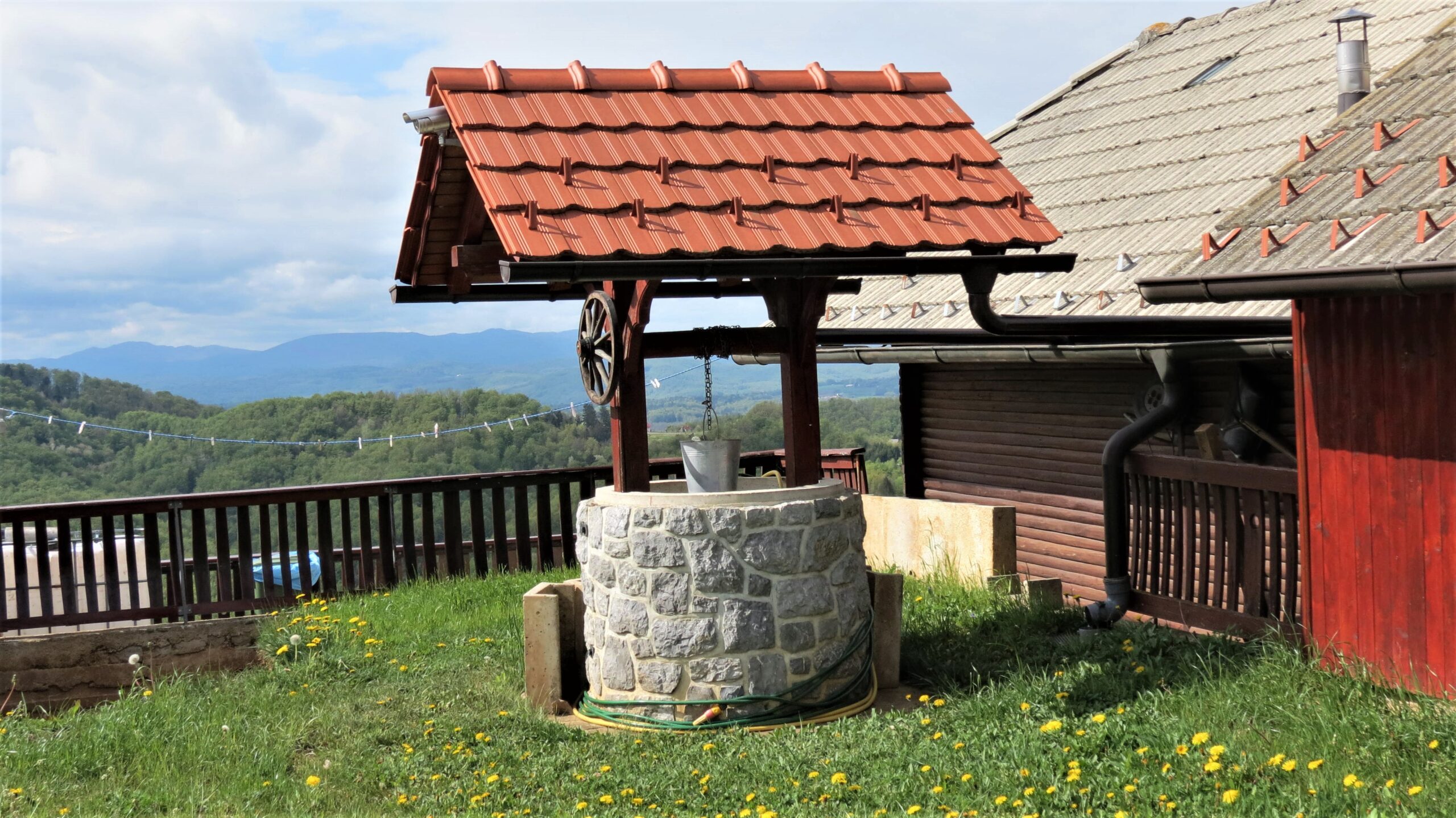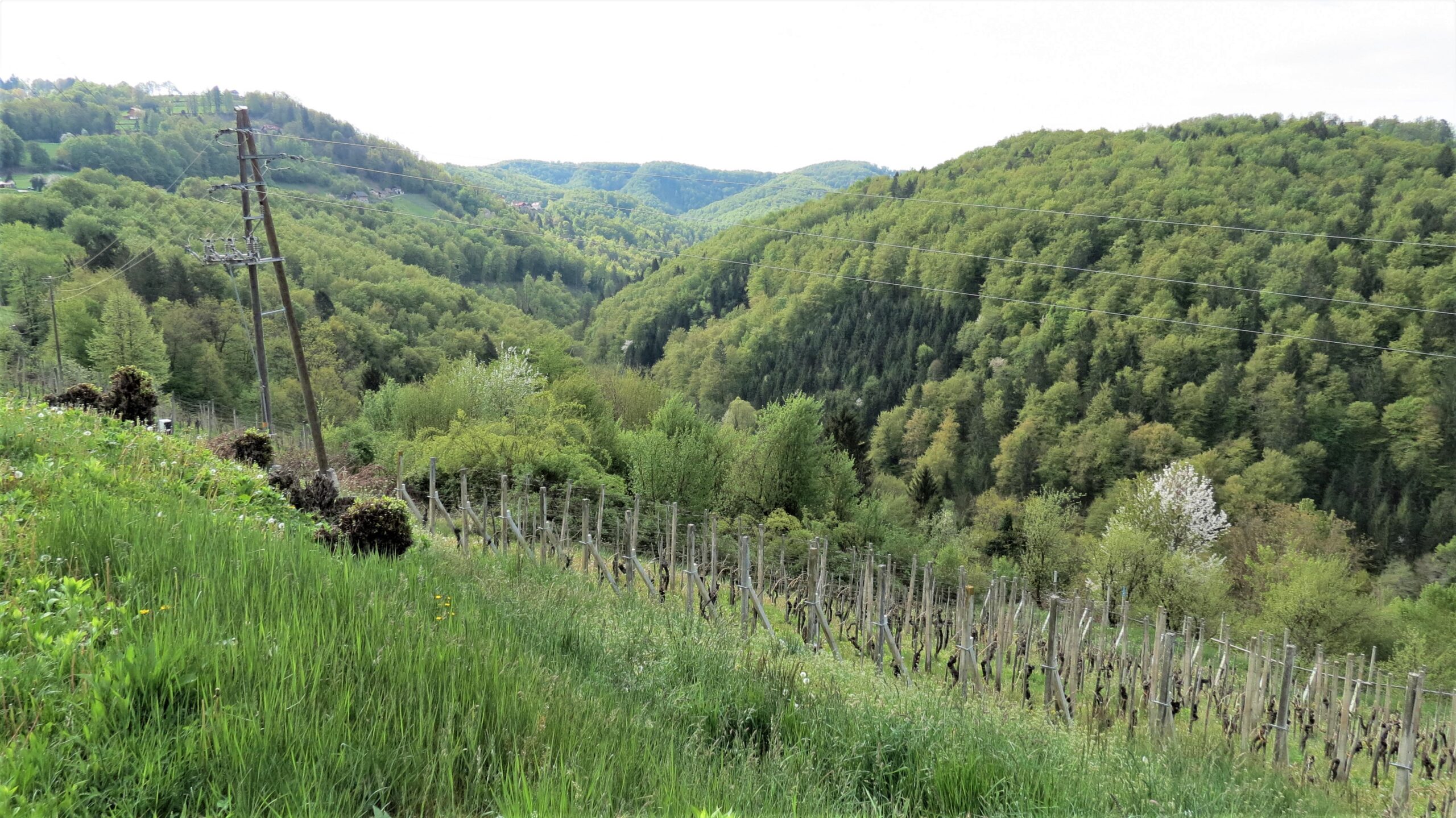 Prijazen oskrbnik nas je po predhodni najavi (ob torkih je koča zaprta) sprejel in postregel s toplimi in hladnimi napitki. Malico smo si privoščili iz nahrbtnika. Ob poti v dolino smo občudovali čudovito urejene vrtove, hiše, umetniške skulpture ob hišah in vrtovih, strme vinograde, cvetlice in cvetoča drevesa ter v daljavi daleč vidno pokrajino tja do Gorjancev.