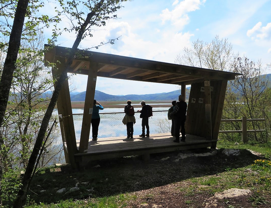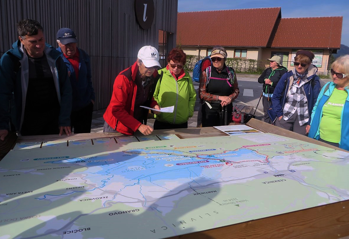 Najprej smo se sprehodili do Rešeta, katerega skalovja na dnu nismo videli, ker je bilo zalito z vodo. Cesta po nasipu nas je privedla do Pretržja, kjer stoji zanimiv prikaz prehranjevalnih spletov med živimi bitji jezera. Za ogled jame Skadulca smo krenili na breg jezera pod Javorniki in videli vhod v podzemni rov, od koder ob dežju voda priteka v jezero in ga polni. Vrnili smo se na pot Drvošec, se seznanili z velikimi zvermi naših gozdov in se pri leseni opazovalnici Klejni vrh razgledali po površini jezera. Tisti z daljnogledi so v daljavi videli bele čaplje in labode, bolj blizu pa črne liske. Po malici smo nadaljevali pohod do razglednega stolpa Otočec, od tam pa do Pocinovega laza, kjer smo na bregu z vodo napolnjene vrtače presenetili na desetine žab. Spustili smo se na cesto in ni bilo daleč do Otoka, kjer stoji še ena lesena opazovalnica z imenom Orlek. Z nje se da opazovati vodno površino tik pod njo, vendar so se ptice poskrile v zavetje trstičja, zato je bila gladina prazna. Vrnili smo se do preliva med Otokom in Drvoščem, da smo si prihranili hojo po prašni cesti nazaj na izhodišče, kamor je po nas prišel avtobus.