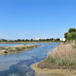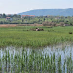 njunega vodenja ne bi opazili. Skozi line opazovalnic smo videli številne vrste ptic, največ je bilo črnih lisk, nekatere so že vodile naraščaj. Za vzdrževanje travnatih površin pa skrbijo kamarški konji in boškarini, istrsko govedo.