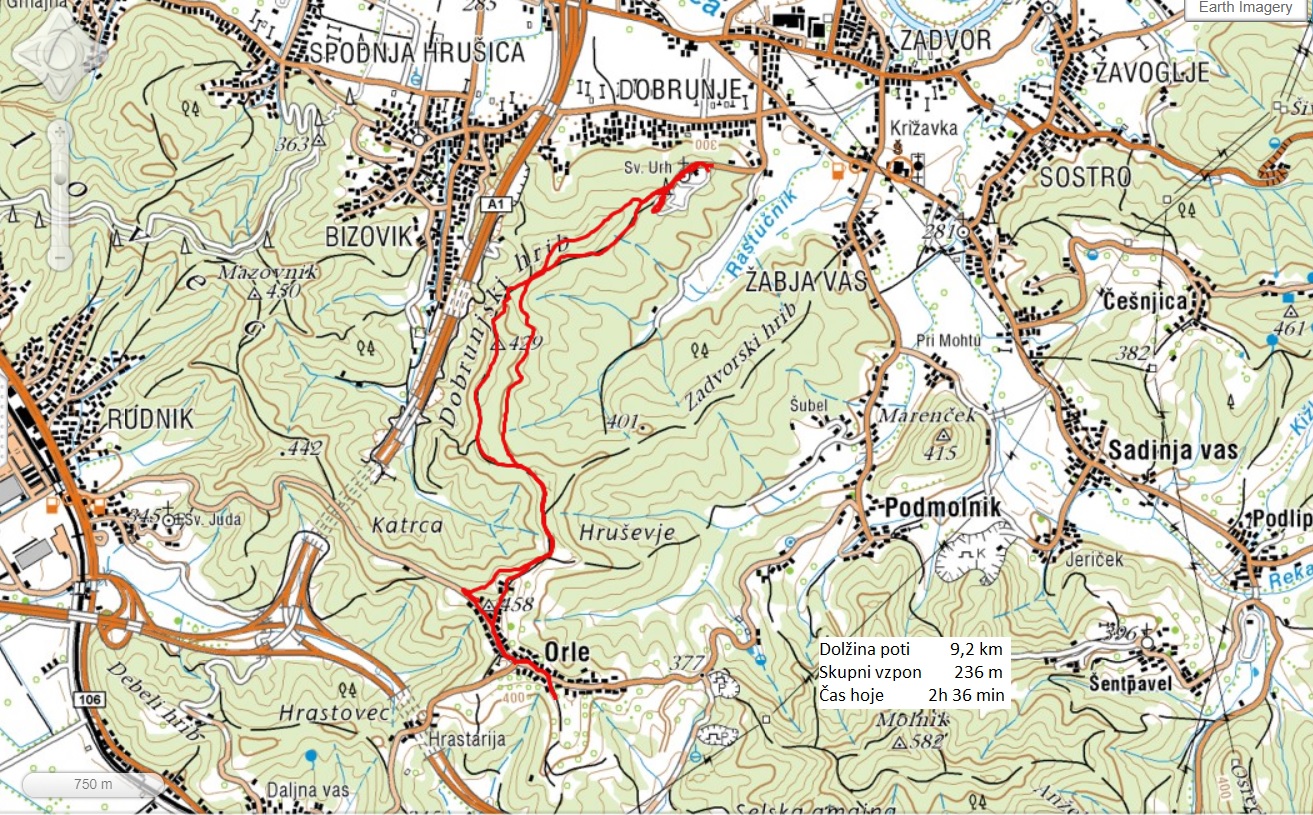 Na Orle vodijo široke sprehajalne poti, mi smo za vzpon izbrali pot preko Dobrunjskega hriba (429 m), sestopili pa po skoraj vzporedni poti, ki nas je pripeljala nazaj k Svetemu Urhu. Na Orlah smo se povzpeli na nov razgledni stolp nad gostilnico Orle, od koder je res obsežen razgled na bližnjo okolico z Ljubljano, ob jasnem vremenu tudi na naše Alpe.