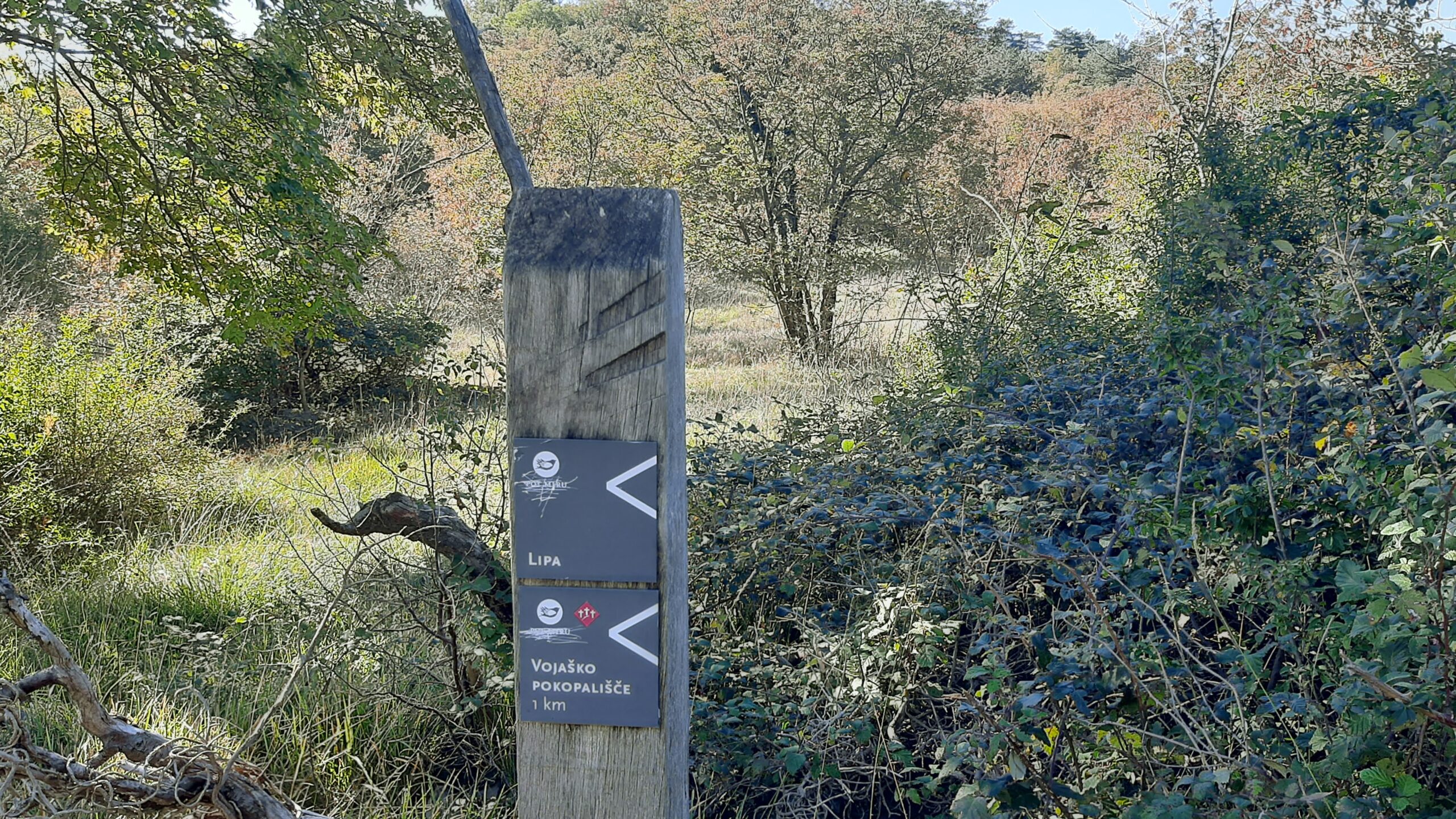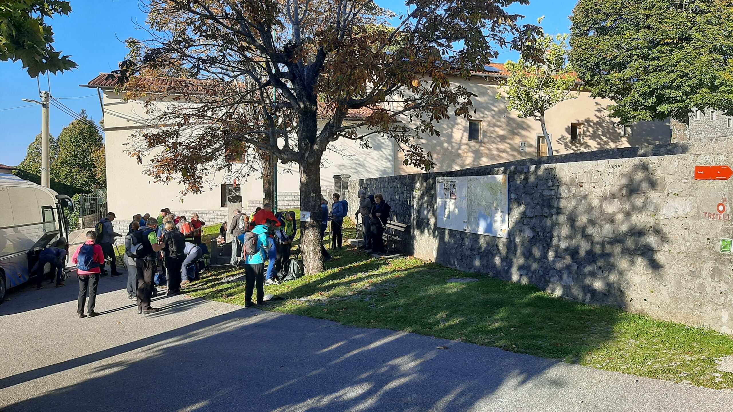 Pohod smo pričeli v vasi Lipa, tipični kraški vasi, za katero so značilni kraški ”borjači”, ”kalone” in ”gase”. Sredi vasi se nahaja cerkev sv. Mihaela, spomenik NOB in napisni kamen v bohoričici z letnico 1809. Pot se je za cerkvijo pričela vzpenjati in ni popustila skoraj do vrha. Tik pod vrhom hriba, na ruševinah nekdanjega italijanskega vojaškega objekta, stoji Stjenkova koča, ki je priljubljena postojanka za pohodnike in izletnike, ki radi preživijo dan v objemu narave in gozdov. V tem času smo lahko občudovali ognjeno obarvan navadni ruj, grm, ki zaznamuje naš kras.