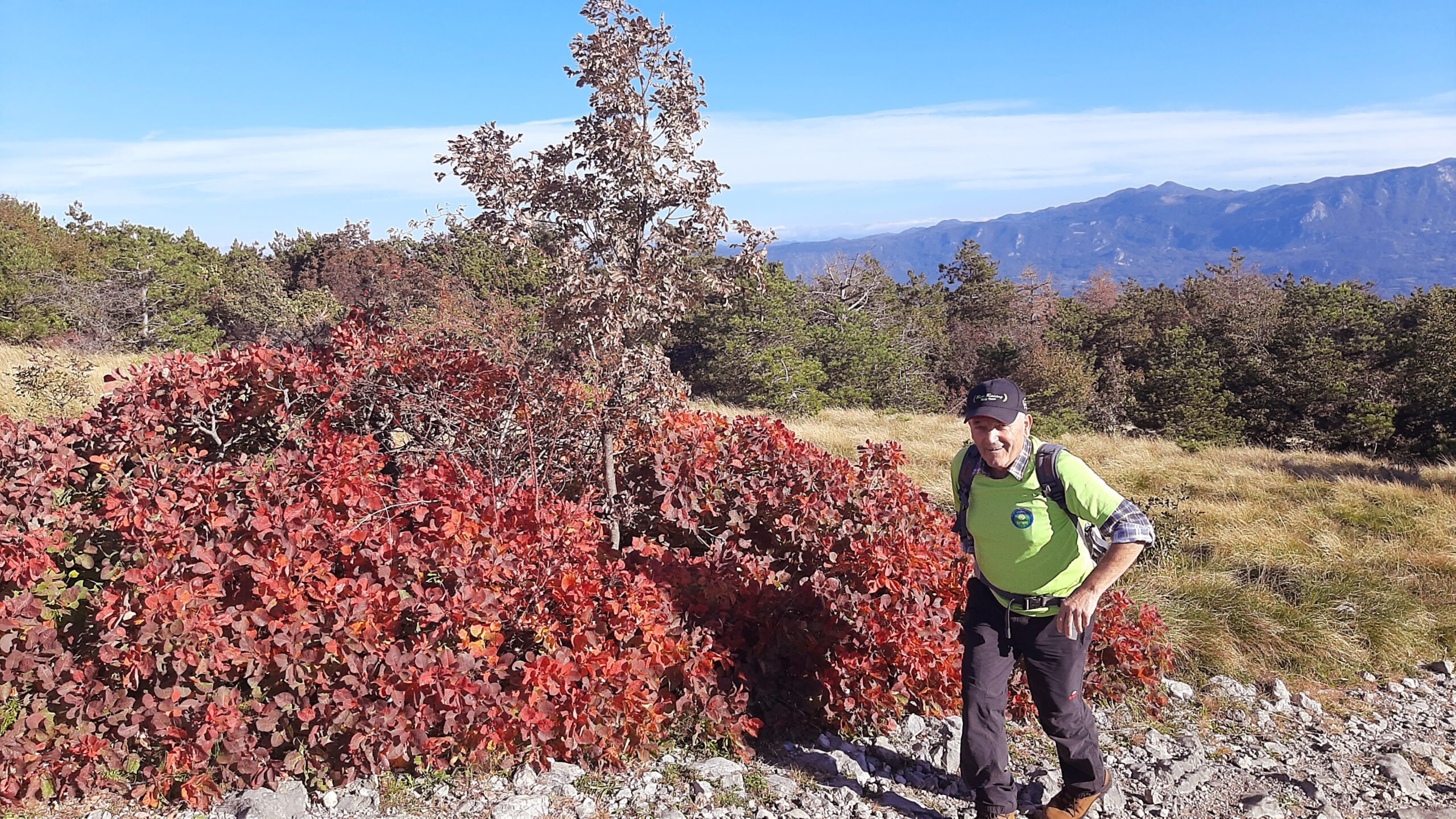 Za čudovit jesenski pohod Barjanov je tokrat poskrbel vodnik Jože Školc. Popeljal nas je na Trstelj, ki je s 643 m nad morjem najvišji hrib na slovenskem Krasu, hkrati pa tudi najvišji vrh Črnih hribov, ki se dvigajo nad planoto Tržaško-komenskega krasa.