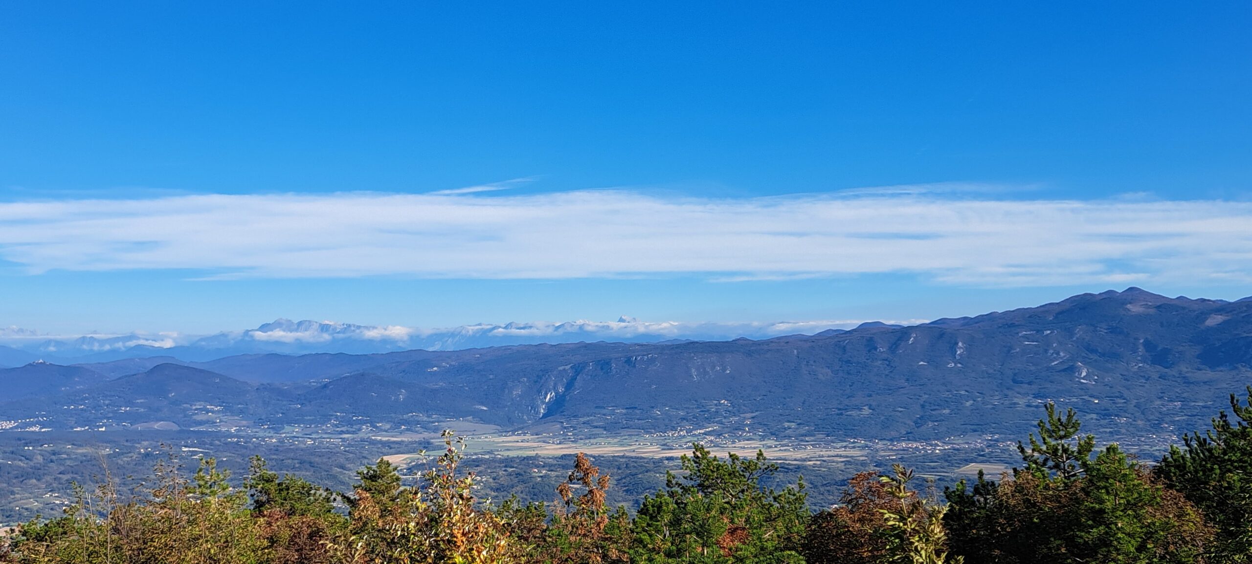 Od koče smo potrebovali le še nekaj minut do vrha Trstelja, kjer si oči pohodnikov spočijejo z razgledi na vse strani neba. Proti vzhodu na Trnovski gozd in Vipavsko dolino. Na jugu se na obzorju vidijo Snežnik, Vremščica in Slavnik, proti zahodu je obširna planota Tržaško-komenskega krasa, preko katere se zelo lepo vidi Tržiški zaliv in proti Novi Gorici in pobočju Trnovskega gozda na severni strani.