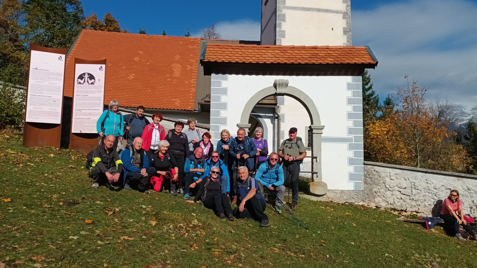 Na lepo sončno soboto, 25. oktobra 2025 nas je Jože popeljal na Štefanjo goro. Štefanja gora se imenuje tako naselje kot hrib. Štefanja gora je vas v občini Cerklje na Gorenjskem in jo sestavljata dva zaselka, Zgornja Štefanja vas in Spodnja Štefanja vas. Zahodno od vasi pa je istoimenski, 748 metrov visoki hrib Štefanja gora.