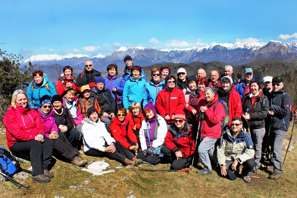 Pot smo pričeli izpred cerkve sv. Petra in Pavla, šli mimo muzeja kovaštva in po lepo označeni in udobni poti mimo zaselkov, ki pa so nekateri prazni, hiše pa razpadajoče. Ker smo izhodišče imeli na 850 m in je tu celinsko podnebje, je kljub soncu bilo hladno. To je bilo vidno tudi na rastlinju, saj nas je spremljalo zgodnje pomladansko cvetje in sicer petelinčki, deveterolistna konopnica, navadni volčin, zeleni teloh, višje pa zvončki in žafrani. Ob občudovanju vseh dolov in dolinic, nekdaj narejenih kamnitih zidkov, hiš in kašč smo prišli na 1071 m visok vrh Lašček. Odprl se je čudovit razgled na Porezen, Julijske Alpe s Triglavom, Krnsko pogorje, Karnijske Alpe, Dolomite, Padsko nižino, Jadransko morje in Snežnik. To je bil pogled za bogove.