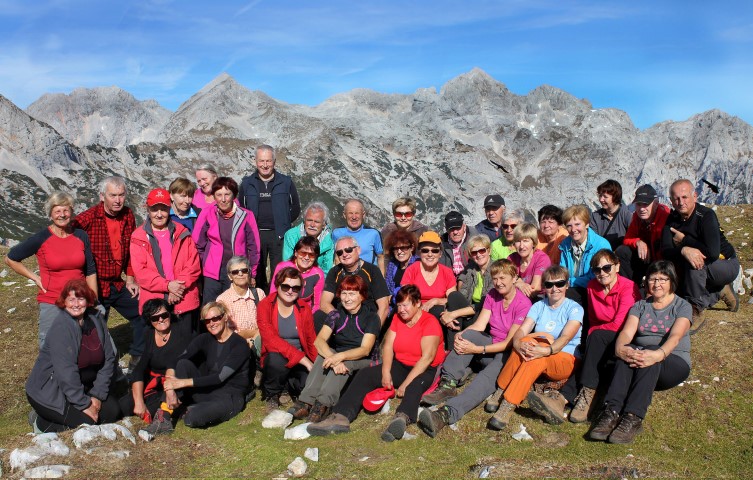 Zagrizli smo se še v zadnjo strmino do razpotja s smernimi tablami in levo po stezi nenadoma dosegli vrh Kompotele (1989m). Znašli smo se nad njenimi prepadnimi stenami, med razgledi, od katerih se zvrti v glavi, pa ne od višine, ampak od vsega, kar so nam razkrili vrhovi Kamniško Savinjskih Alp z dolino Kamniške Bistrice spodaj, vrhovi Krvavca s Kalškim grebenom in Julijci s Triglavom v ozadju. Zdelo se je, da je vse na dosegu roke, pa vendar je bilo daleč, a srce je imelo moč, da je vse to objelo in čutilo. V gorah se čuti podobno. Posedli smo naokoli, srkali vase belino sten in melišč, dihali vonj po rušju in šteli kavke, ki so krožile, da bodo pojedle, kar smo nadrobili.