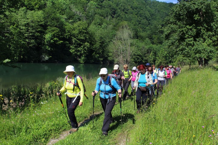 Bilo mi je vroče in pogled na izvir Trpotec z vodo večne mladosti je osvežujoče vplival name in druge pohodnike, ko je izpod sklanega brega v obliki tolmuna odtekal v reko. Kmalu smo videli, kako bobneče se je mirna reka raztogotila, ko je pri enem najstarejših belokranjskih mlinov v vasi Breg neustavljivo drla čez stari jez v obliki ribje luske. Tako je Kolpa na poti proti jugu upočasnjevala in spet pospeševala svoj tok. Ritem moje hoje se je stapljal s pogledom na vodo v odtenkih zelene in na cesto v zelenju dreves na nasprotnem bregu. Čez čas smo nad stezo pred seboj opazili ostanke zavrženih oblačil in mokrih spalnih vreč ljudi, ki so tu čez iskali vrata v boljše življenje, medtem ko so visoke ograje molčale njihove zgodbe. Približali smo se mokremu skalovju pred vhodom v kraško jamo Kobiljačo, kmalu pa smo desno spodaj opazili tudi oznako za Francoski kamen, ob katerem so domačini nekdaj v zgodovini pobili francoske vojake.