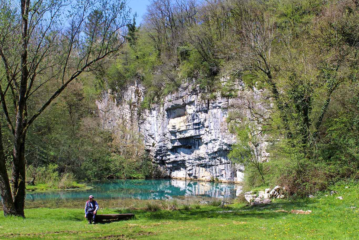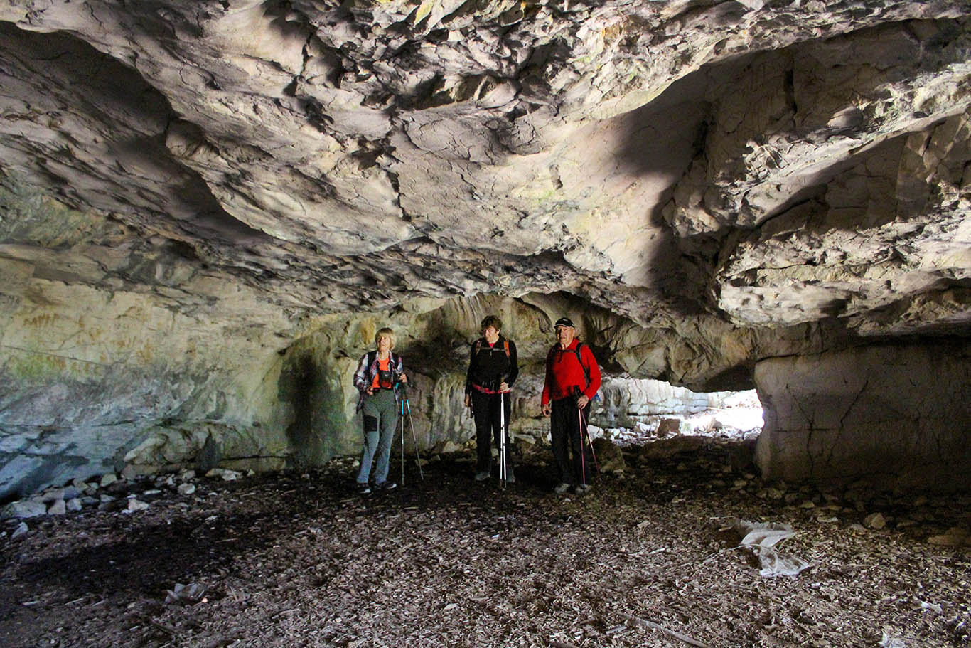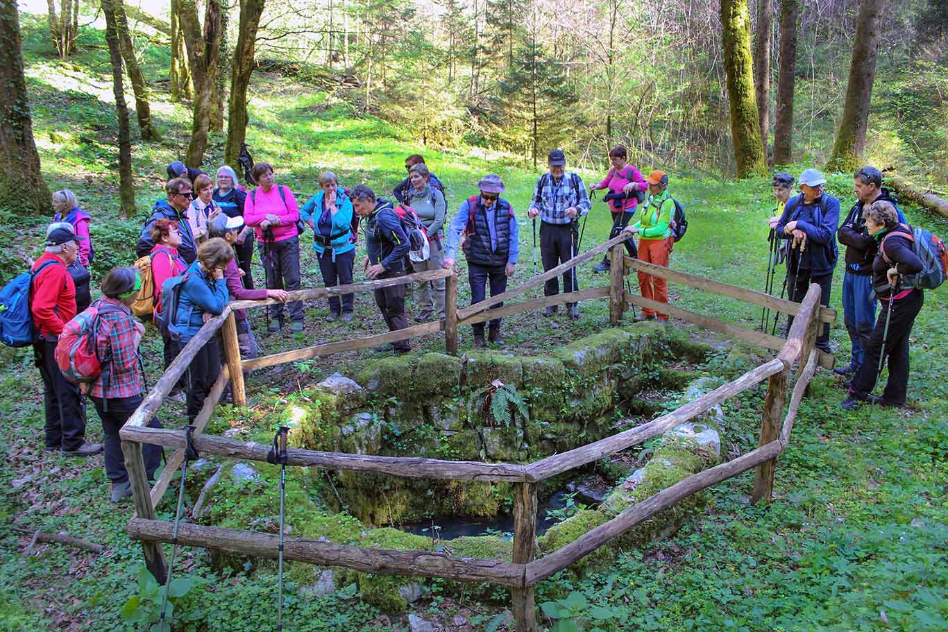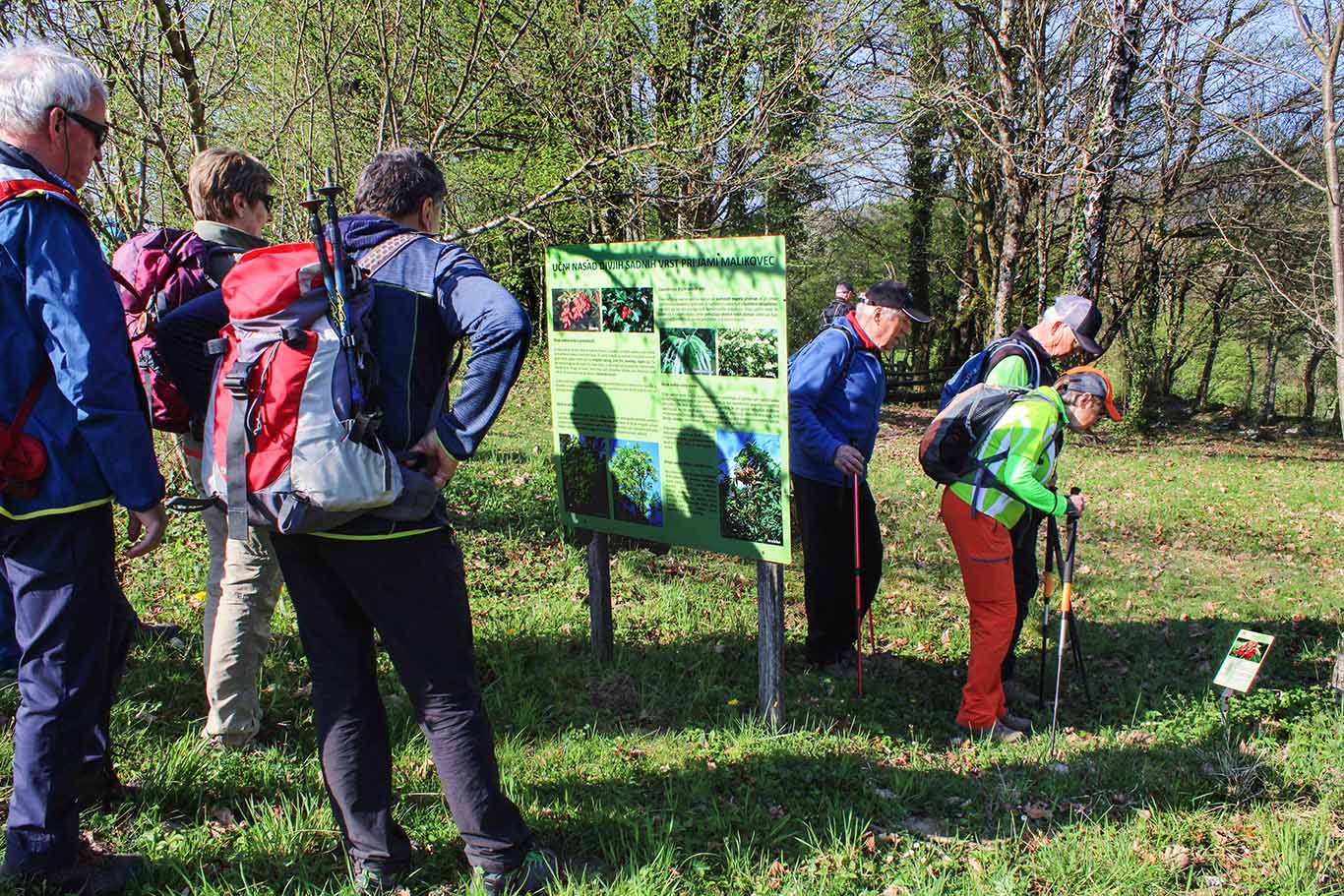 V prelepem sončnem jutru smo se odpeljali proti Beli krajini na kraško učno pot od Lebice do Krupe. Že vožnja do Semiča je bila zanimiva, saj smo se ob reki Krki najprej peljali skozi Žužemberk z ostanki mogočnega gradu, skozi Dvor, kjer je v 19. stoletju delovala livarna za železne izdelke, ter Sotesko, ko cesta pelje tik ob ostankih gradu, požganega v drugi svetovni vojni. Ob pogledu na Hudičev turn – nekdaj vrtni paviljon z »dvomljivim slovesom«, smo zavili iz doline Krke v smer Črmošnjiške prelomnice na takoimenovano »partizansko magistralo«. Vodnica Sonja nas je opozorila na več obrhov, površinskih izvirov kraške Radeščice. Naselja so tu redkeje posejana, smo pa sem ter tja videli tudi kakšen ostanek vasi nekdanjih kočevarskih Nemcev in ob cesti muzej na temo njihovega življenja na tem ozemlju.