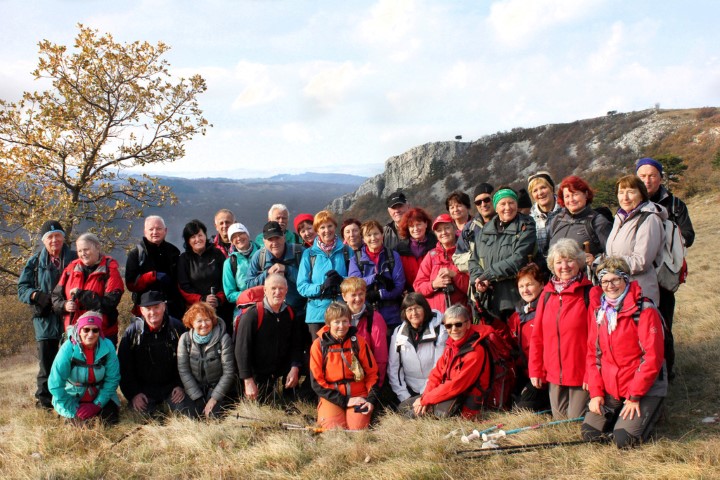 S Kuka smo se odpravili  mimo tabel za Lačno, Kuk, Slavnik in Tri Učke navzdol proti Movražu in se ozirali na barvitost ruja, ki se je širil pod bori  in hrasti  vse do prepadnih sten nad Movražem, slikovito vasjo na robu Movraške vale, katero smo prečkali  po travnikih  in poljih ob sveže obrezanih vinogradih ter vstopili na stezo, ki nas je ob lesenih križih Križevega pota vodila navzgor po goličavah hriba Gradec (509 m). Tik pod robom  planote smo preskočili nasip kamenja, ki je ostanek prazgodovinskega gradišča.  Med  borovci in rujem smo med cipresami ugledali cerkev sv. Kvirika z obzidjem in pokopališčem,  za vodnjakom ob cesti pa se je med listjem  ruja na vzpetini nahajala Sočerga,  kamor smo se spustili po asfaltu in  tako zaključili še en izlet Sončkov.