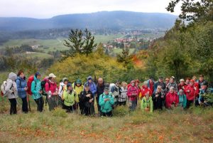 Sončki smo se odpeljali proti Pohorju skozi Slovensko Bistrico, do hribovske vasi Veliko Tinje. Ob občudovanju zelenih pobočij s samotnimi vasmi in kmetijami pod nami,