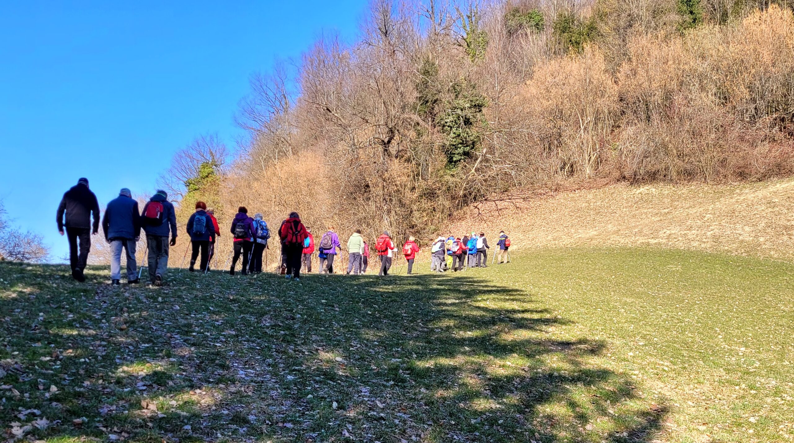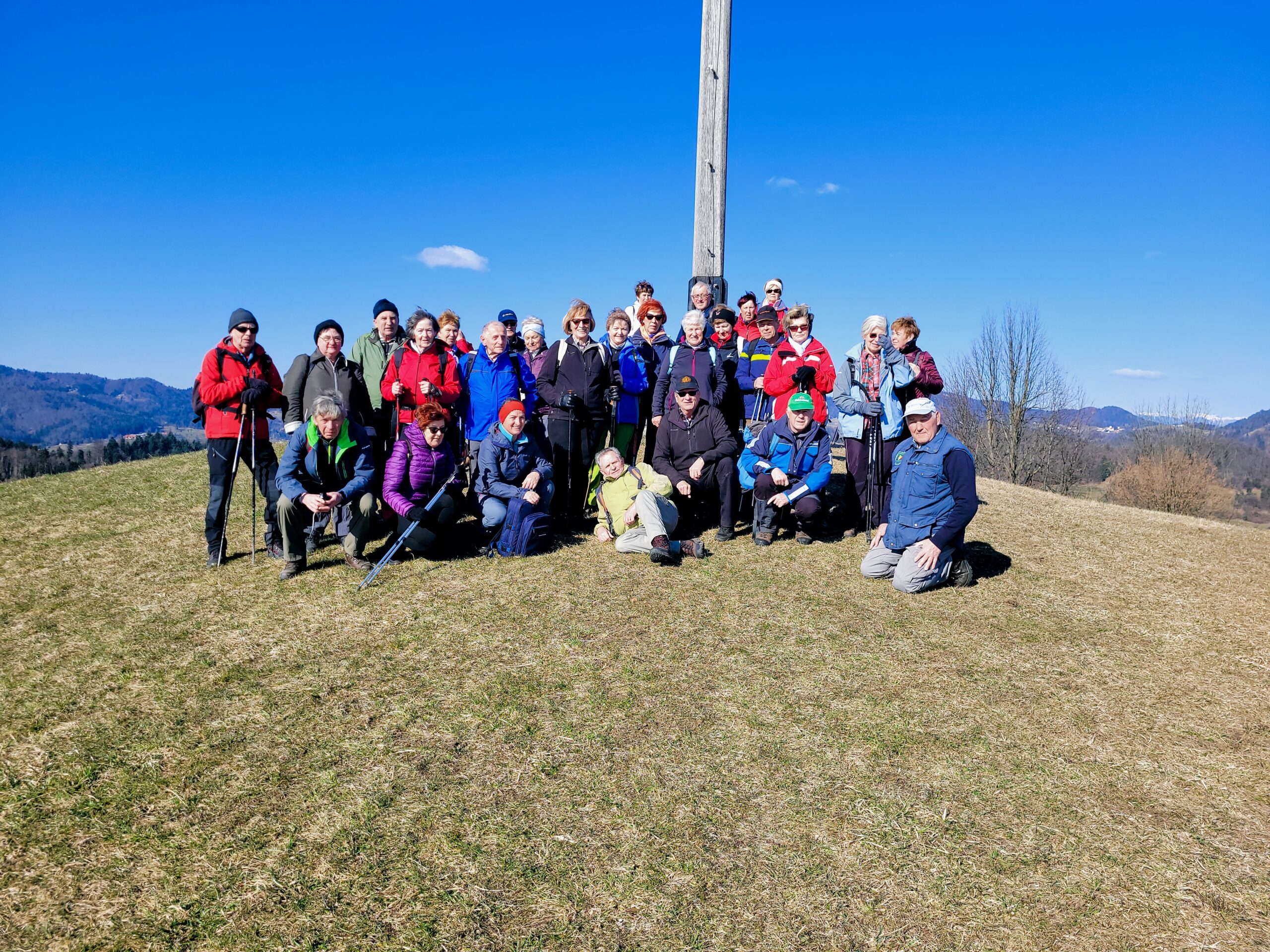 se povzpeli na »Žažarski Triglav« s 547 m nadmorske višine visoki hrib Gradišče, na katerem je postavljen velik lesen križ. Od tam smo uživali v razgledu na bližnje in daljne bregove in vrhove, nekatere celo zasnežene. Po spominskem posnetku smo se po strmi poti podali v Žažar in se od tam preko kraške globeli povzpeli na prisojno panoramsko pot proti Podlipi. Uživali smo ob klepetu in občudovanju z mnogo cvetja prebujajočo se naravo. Po strmem spustu smo kaj hitro dosegli naš končni cilj – pod sv. Brikcijem prijazno gostišče Pri Vrtnarju. Ob prijetnem druženju smo opravili zaključek lanskoletnih pohodov, potrdili sprejem dveh novih članov v našo pohodniško skupino in se spomnili praznika žensk. Ob petju in smehu smo se z avtobusom odpeljali na Vrhniko, veseli, da smo preživeli po dolgem času spet en lep prijeten s soncem obsijan dan, kot se za dan žena – osmi marec- spodobi. Hvala vsem, predvsem pa naši jubilantki Elici in skrbnim vodnikom.