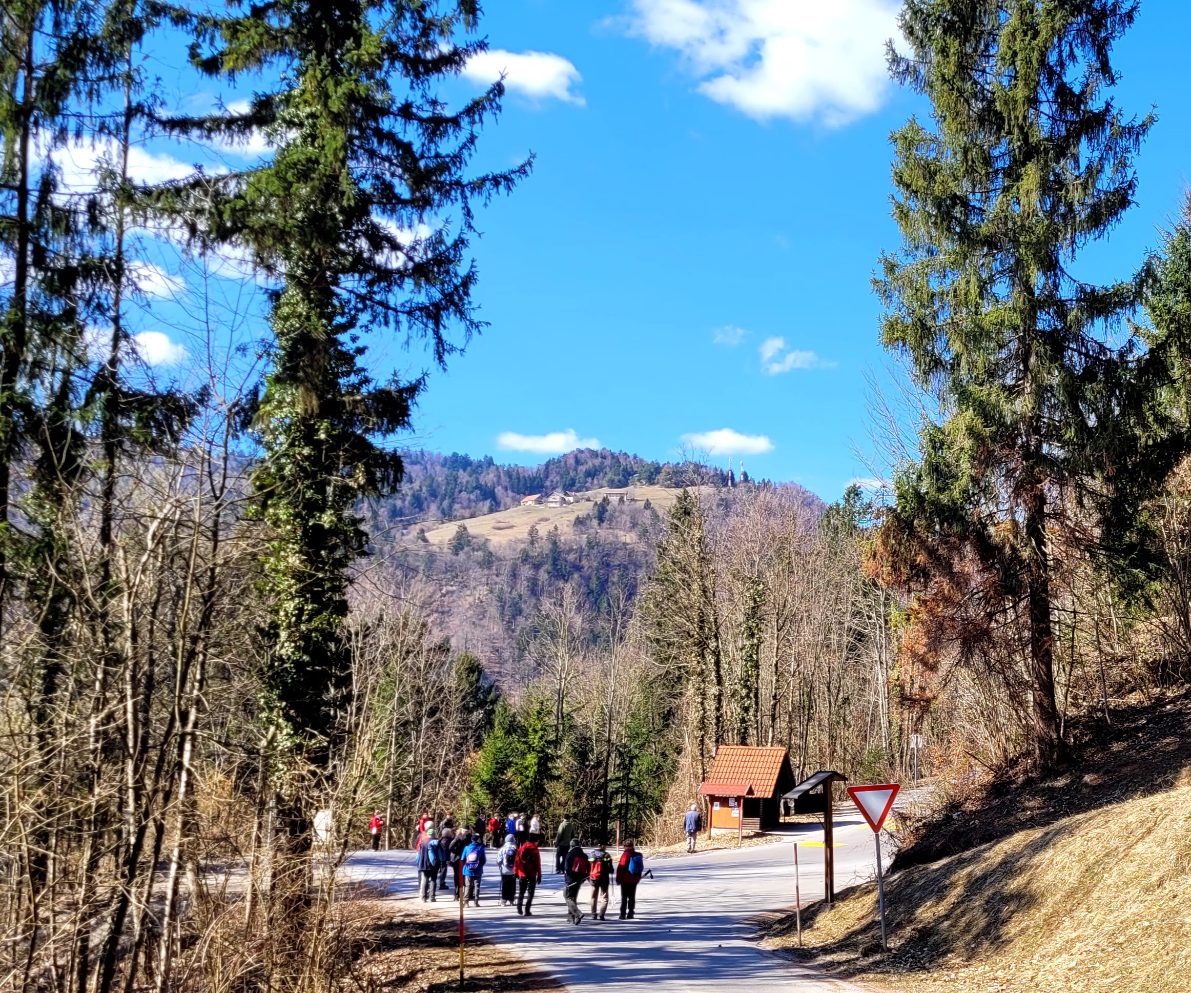 Skoraj bo pomlad in Zimzeleni smo se po polletnem prisilnem počitku ponovno podali na pohod. Z avtobusom smo se odpeljali skozi Ligojno proti Žažarju. Kaj kmalu smo izstopili in